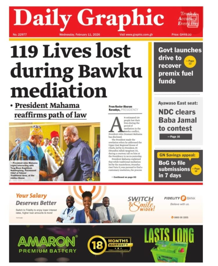 insert_link Local Today’s Front pages: Wednesday, February 11, 2026 Myjoyonline.com brings you the front pages of the various newspapers across the country. Source: www.myjoyonline.comRead full article todayFebruary 11, 2026